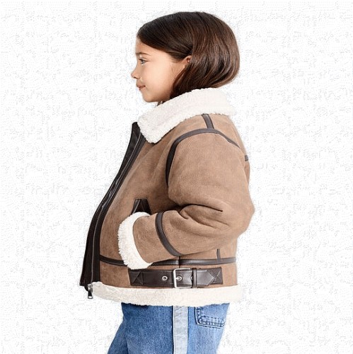 F&F Girls Faux Shearling Aviator Jacket in Brown