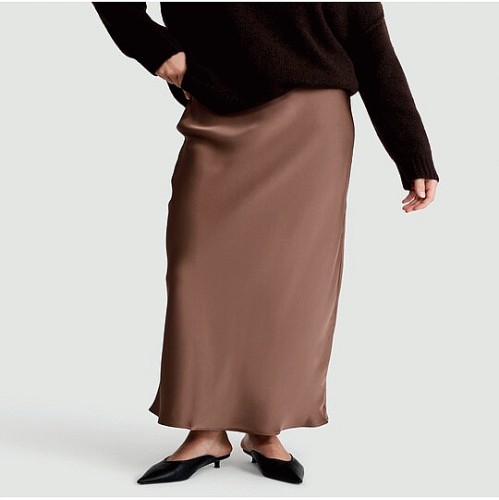 The F&F Edit Satin Slip Midi Skirt in Brown