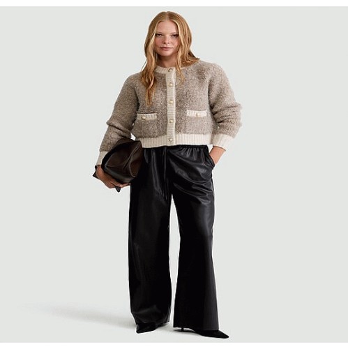 The F&F Edit Faux Leather Wide Leg Drawstring Joggers in Brown