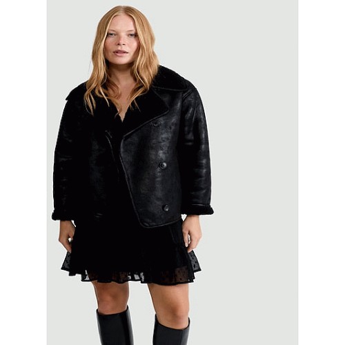 The F&F Edit Faux Shearling Lined Aviator Jacket in Black