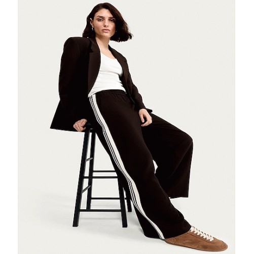 Side Stripe Wide Leg Trousers in Brown