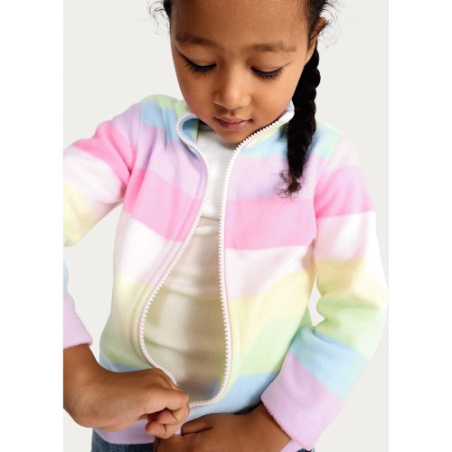 F&F Girls Fleece Rainbow Striped Zip Up Jacket in Multi