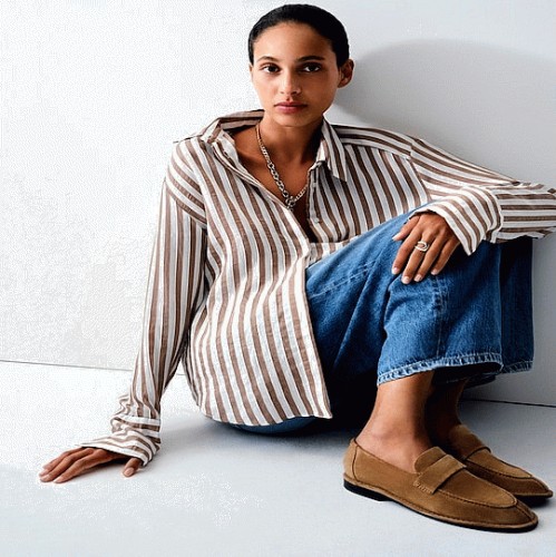 The F&F Edit Striped Tie Waist Shirt in Yellow