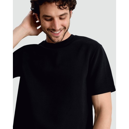 The F&F Edit Cotton Rich Ribbed Short Sleeved T-Shirt in Black
