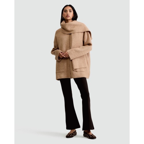 Knitted Scarf Detail Cardigan with Wool in Neutral