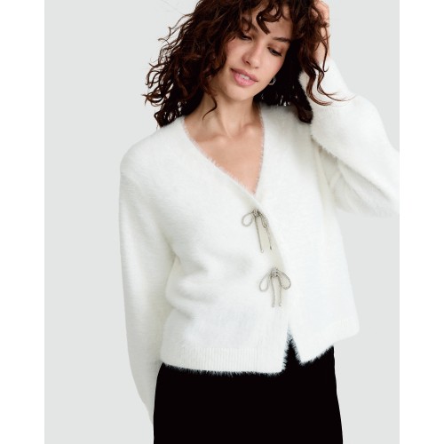 The F&F Edit Textured Bow Detail Cardigan with Wool in Neutral