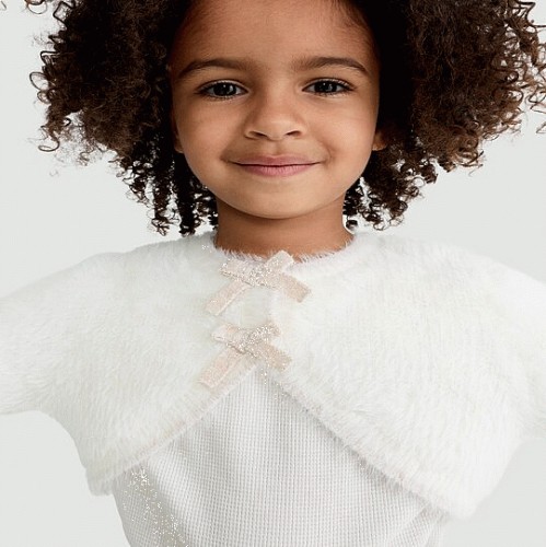 F&F Girls Fluffy Bow Accent Bolero in Cream