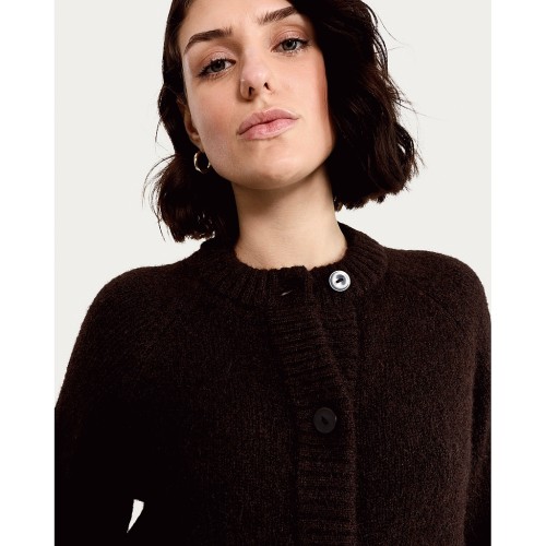 Textured Button Up Cropped Cardigan with Wool in Brown