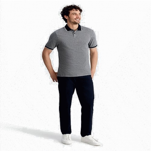 The F&F Edit Pure Cotton Textured Geometric Print Polo Shirt in Navy