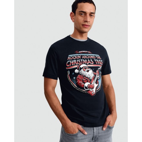 Pure Cotton Rockin' Around the Christmas Tree T-Shirt in Navy