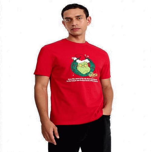 The Grinch Pure Cotton Christmas Quote T-Shirt in Red