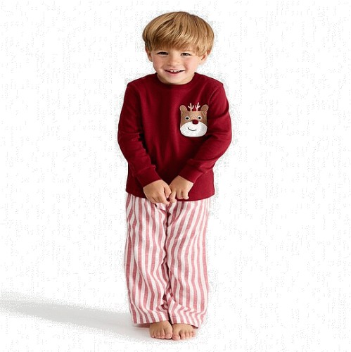 Boys Pure Cotton Reindeer Pocket Top and Trousers Pyjamas in Red