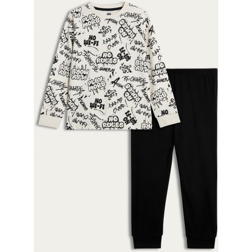 Boys Pure Cotton Graffiti Printed Top and Cuffed Joggers Pyjamas in Multi