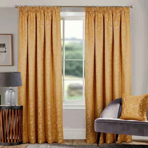 Gold Buckingham Metallic Lined Pencil Pleat Curtains 114x122cm
