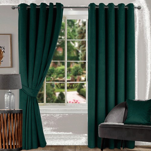 Green Thermal Interlined Soft Velour Eyelet Curtains 114x137cm