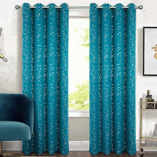 Victoria Teal Metallic Eyelet Curtains 137x183cm