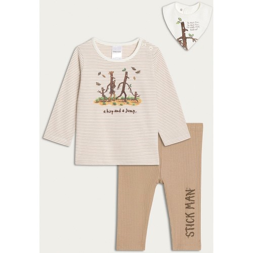 Stick Man 3-Piece Pure Cotton Top Leggings and Bib in White