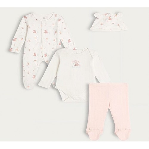 4-Piece Pure Cotton New to the World Set in Multi Pink