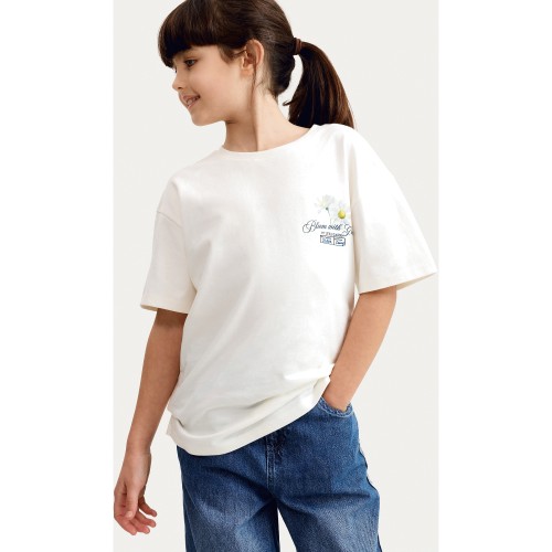 F&F Girls Pure Cotton Nature Is a Mood Slogan T-Shirt in White