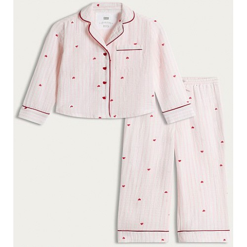 Girls Pure Cotton Heart Print Pyjama Set in Multi