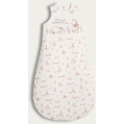 Disney Winnie the Pooh Print Pure Cotton 1.5 Tog Sleeping Bag in White