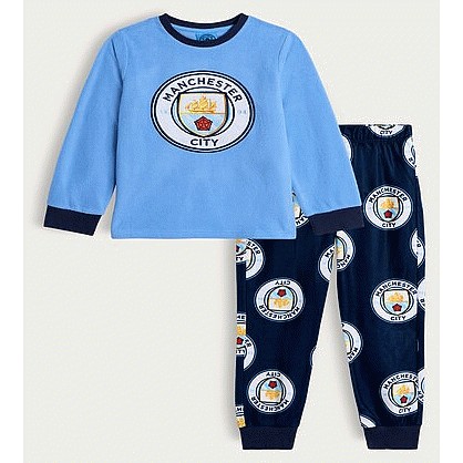 Manchester City Football Club Print Minky Fleece Pyjamas in Blue