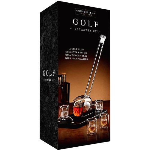 Connoisseur Creations Golf Club Decanter Set Trendy Design with 4 Matching Glasses