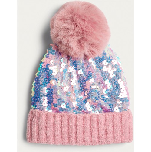 Girls Sequin Pom Pom Beanie Hat in Multi