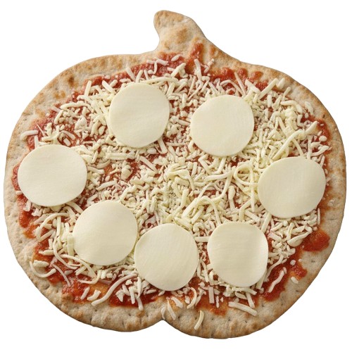 It is topped with a signature tomato sauce and shaved, diced mozzarella.