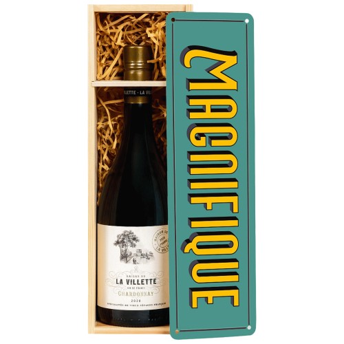 Wooden Box with La Villette Pinot Noir Cave a Vin