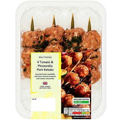 Waitrose BBQ 4 Tomato & Mozzarella Pork Kebabs