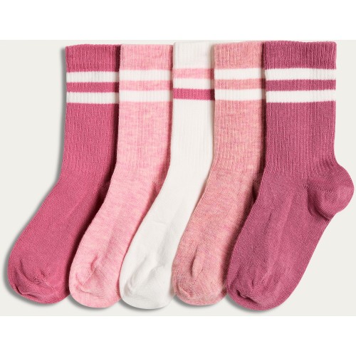 Girls 5-Pack Cotton Blend Stripe Ankle Socks in Pink