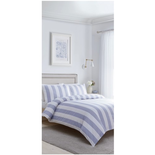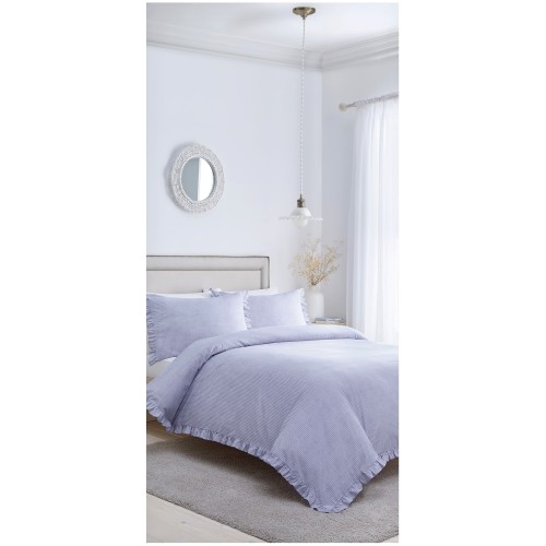 Retreat Blue Stripe Frill Duvet Superking 180 thread count