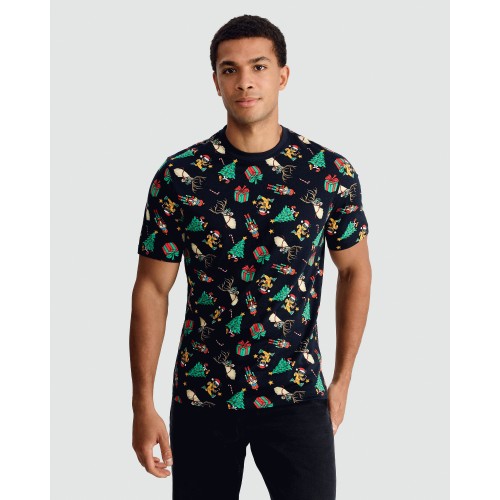 Pure Cotton Festive Print Short Sleeved T-Shirt in Navy