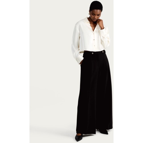 Wide Leg Button Detail Trousers in Black