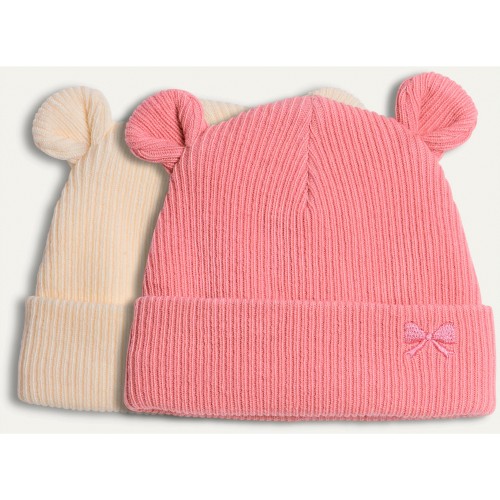 Baby 2-Pack Ribbed Bear Ear Beanie Hats in Multi