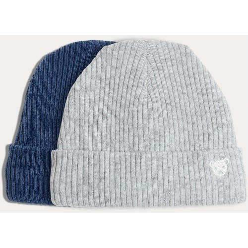 Baby 2-Pack Ribbed Bear Embroidered Beanie Hats in Multi