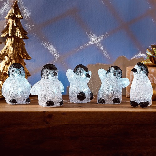 Battery Operated Acrylic Light Up Penguins Set Of 5