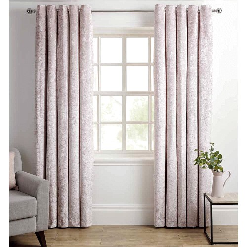 Blush Crushed Velvet Effect Lined Eyelet Curtains 167 W x183cm D