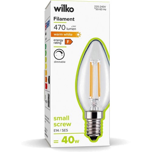 Small Screw E14 SES LED Filament 470 Lumens Candle Dimmable Light Bulb