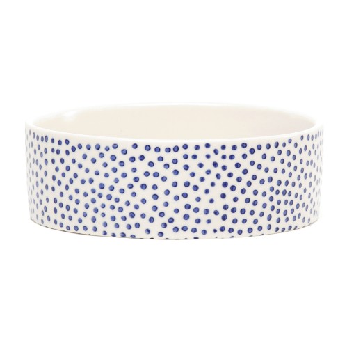 Coastal Medium Dog Bowl Blue Polka Dot Pattern