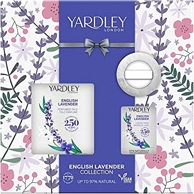 London Gifts for Women English Lavender Talc & Soap with Dusting Puff Christmas Gifts for her Ideal for Birthdays New Year Eve Vegan Friendly Cruelty Free