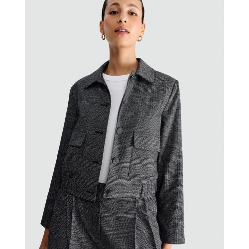 Check Cropped Jacket in Black