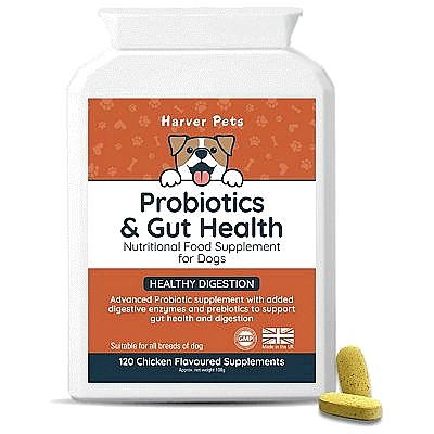 Probiotic And Gut Health Supplement For Dogs Chicken Flavoured 120 Tablets